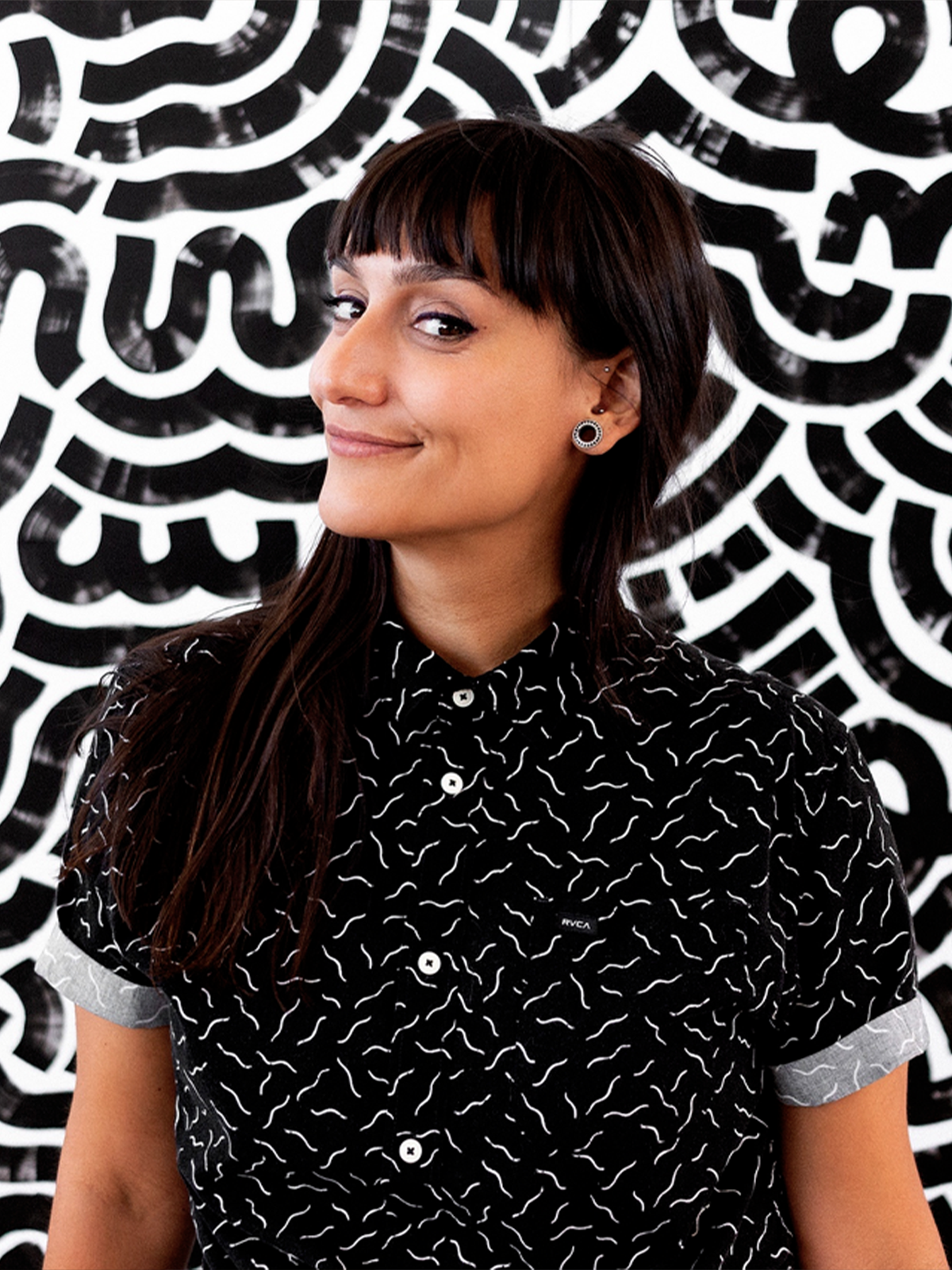 Vanessa takes a special liking to street art projects and finds the challenge of painting large public murals very rewarding. Her style is an exploration of duality and flow with the use of graphic elements and strong contrasting colors. She has exhibited her work in the UK, France, Germany, Japan and China.