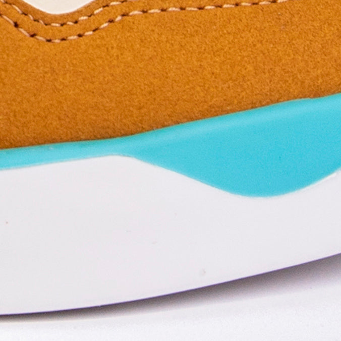 The Shoevenir uses 100% recyclable synthetic rubber, vegan suede, vegan leather, recycled cork, and recycled polyester.