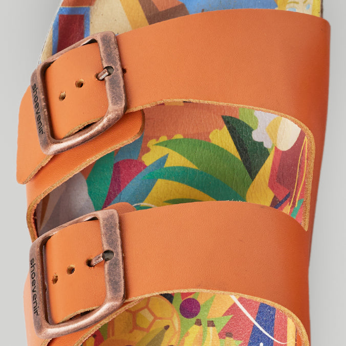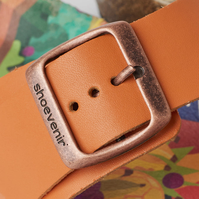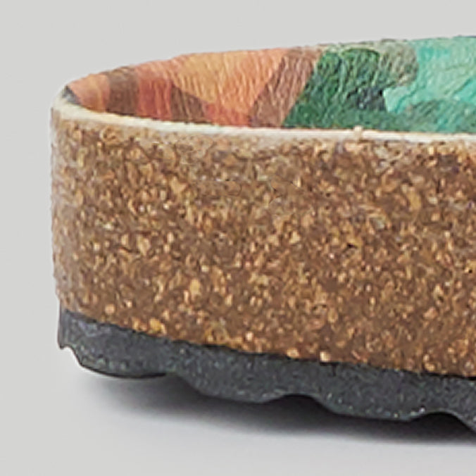 The Shoevenir uses 100% recyclable synthetic rubber, vegan suede, vegan leather, recycled cork, and recycled polyester.