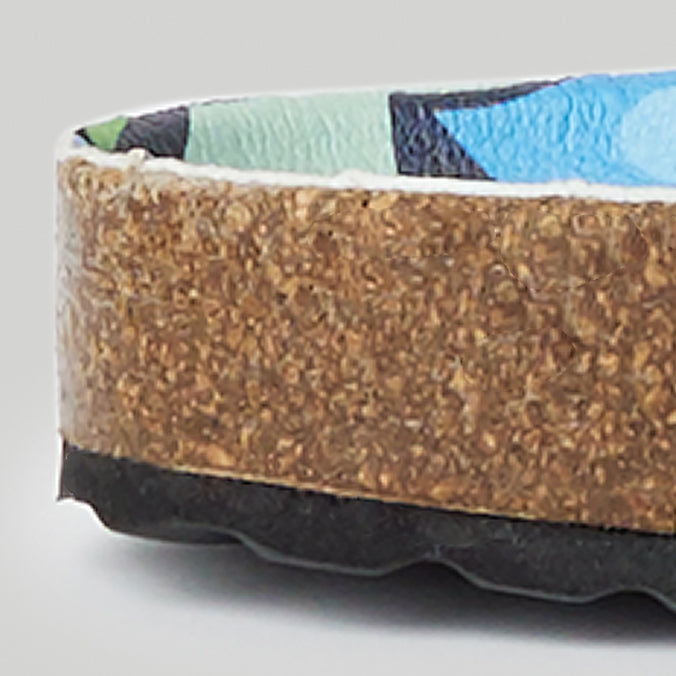 The Shoevenir uses 100% recyclable synthetic rubber, vegan suede, vegan leather, recycled cork, and recycled polyester.